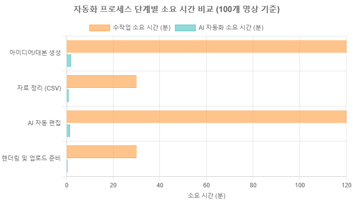 틱톡 숏폼 대량 제작 자동화 프로세스 단계별 소요 시간 비교