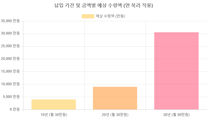 장기간 가입이 곧 수익 극대화로 이어지는 만큼, 최소 10년 이상 일정 금액 이상을 꾸준히 납부하는 전략이 중요합니다.