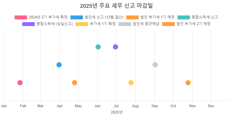 * 위 일정은 일반적인 12월 결산법인 및 개인사업자 기준이며, 신고·납부 기한이 공휴일이나 토요일인 경우 다음 영업일로 자동 연장됩니다.
