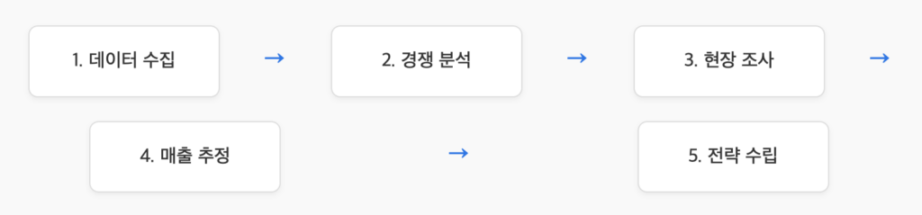 상권분석 프로세스는 크게 다섯 단계로 나뉘는데, 데이터 수집부터 현장조사, 경쟁 환경 분석, 매출 추정, 그리고 최종 전략 수립까지 체계적입니다. 상권 관련 데이터를 시각적으로 쉽게 파악할 수 있도록 인포그래픽 등을 활용하면, 소상공인의 의사결정에 큰 도움이 됩니다. 전체 과정을 제대로 이해하고 활용하면 위험 요소를 최소화하며 사업 성공률을 크게 높일 수 있습니다.