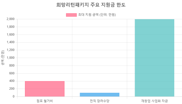 희망리턴패키지의 주요 지원금 규모를 한눈에 비교하면 다음과 같습니다.