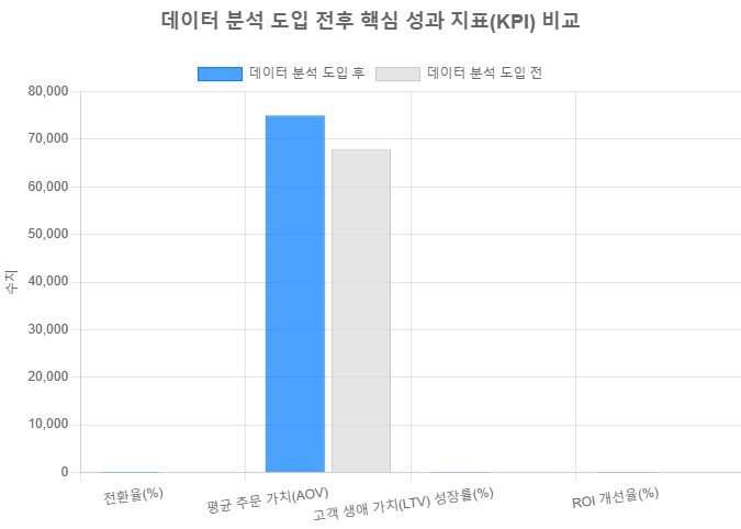 전환율은 방문자 대비 구매 전환 비율로, 평균 전자상거래 사이트의 전환율은 약 2.8%에 달합니다. AOV는 고객 한 명이 한 번에 지불하는 평균 금액으로, 2025년 이커머스 평균 AOV는 약 75,000원이며, 이를 10%만 증대해도 연간 수십억 원의 매출 상승 효과가 나타날 수 있습니다. LTV는 고객의 누적 수익을 의미하며, 고객 유지율 5% 향상 시 LTV가 25% 증가한다는 연구 결과가 있습니다. ROI는 마케팅 투자 대비 수익률로, 적절한 어트리뷰션 모델 도입 시 ROI가 30% 이상 개선된 기업 사례가 다수 보고되었습니다.